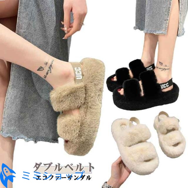 バックバンド ミュール バックベルト 靴 室内 エコファー 4cmヒール 暖かい ふわふわ 歩きやすい スリッパ 軽量 モコモコ 室外 ファーサンダル カジュアル