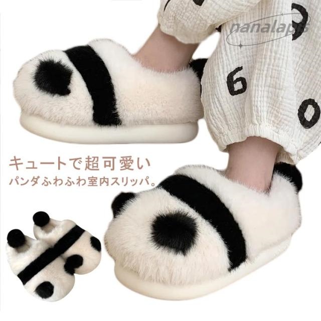 パンダ ルームシューズ ファースリッパ レディース ルームスリッパ 暖か ボア スリッパ かかと付き もこもこ あったか 厚底 スリッパ おしゃれ ふわふわ 冷え対策 かわいい オフィス 室内 部屋 自宅 事務所 あったか モコモコ 冬 来客用 キッズ 送料無料 プレゼント