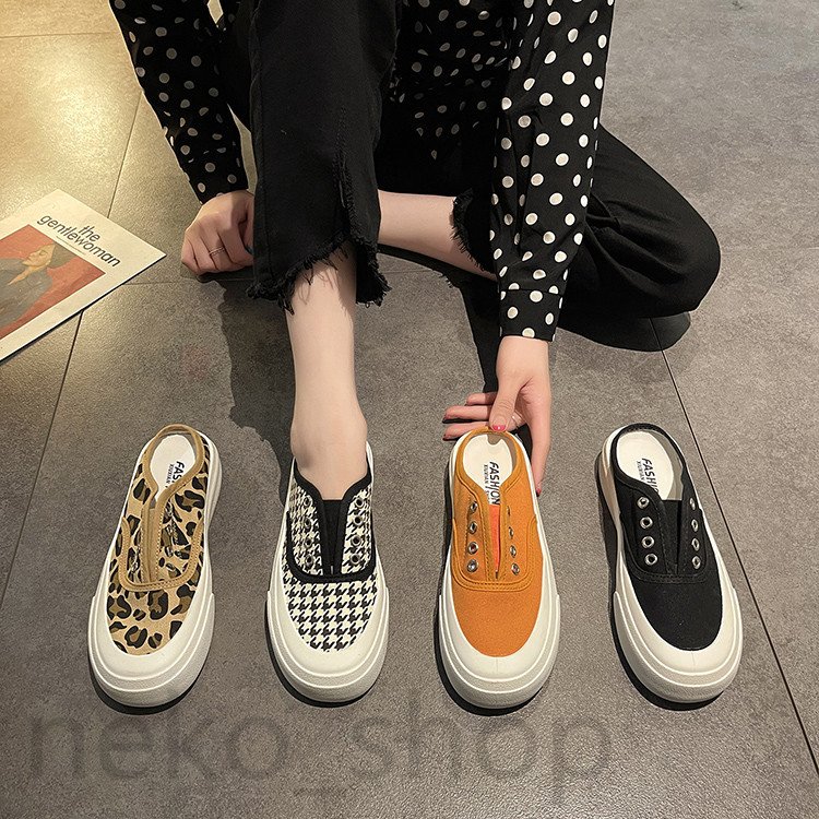 ■5color 厚底 スニーカー かかとなし サンダル レディース ローカット キャンバス 帆布靴 スリッポン スリッパ バブーシュ カジュアル 美