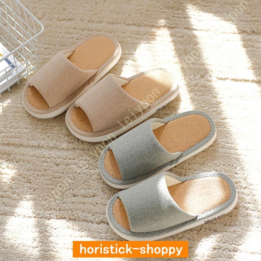 ルームシューズ スリッパ レディース リネン 亜麻 前開き 厚底 日常使い 室内用 ベランダ用 お庭用 履きやすく 静音で軽量 綿麻 夏 春 スリッパ編み物 来客用