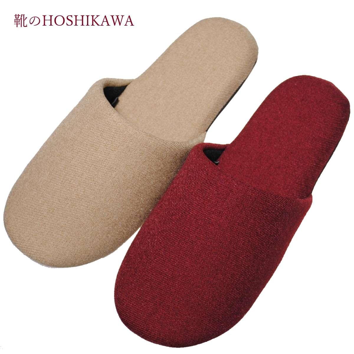■スリッパ サージ ワイン ベージュ Sサイズ 21cm〜22.5cm 高反発クッション 無地 丸洗いOK 小さいサイズ 室内用 秋冬