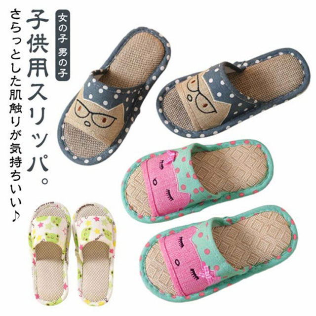 ■子供 スリッパ 夏用 ルームシューズ 室内履き 綿麻 室内用 軽い 女の子 男の子 キッズ ルームシューズ 履きやすい 滑り止め ナチュラル