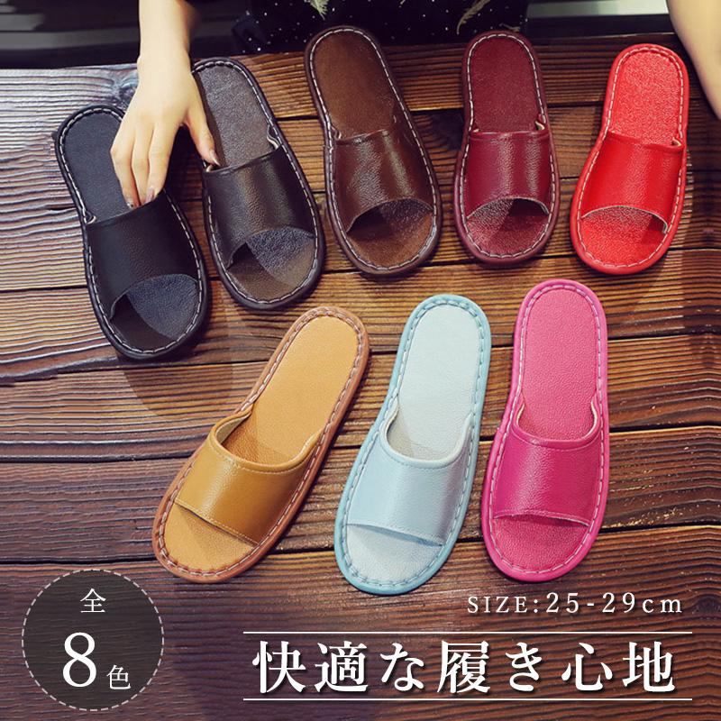 レザー調 スリッパ ルームシューズ レディース メンズ 室内履き おしゃれ 通気 涼しい 女性用 男性用 履きやすい 歩きやすい 滑り止め フィット シンプル 春 夏