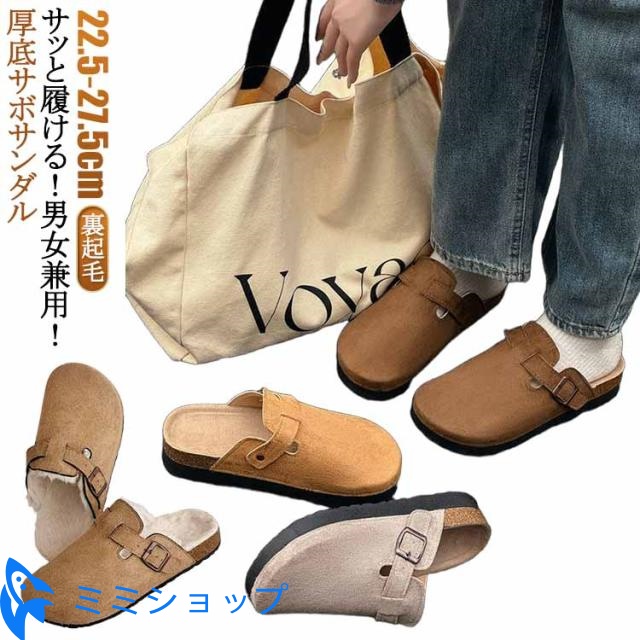 あったか サンダル シューズ サボサンダル スリッパ ルームシューズ 暖かい 冬 防寒 仕事履き ボア付き ファー 靴 サボ 冬用 裏起毛 スウェード ぺたんこ スリッポン クロッグ 楽ち かかとなしあったか サンダル シューズ サボサン レディース靴 スリッポン 新登場! キャメル ダークブラウン 36 37 38 39 40