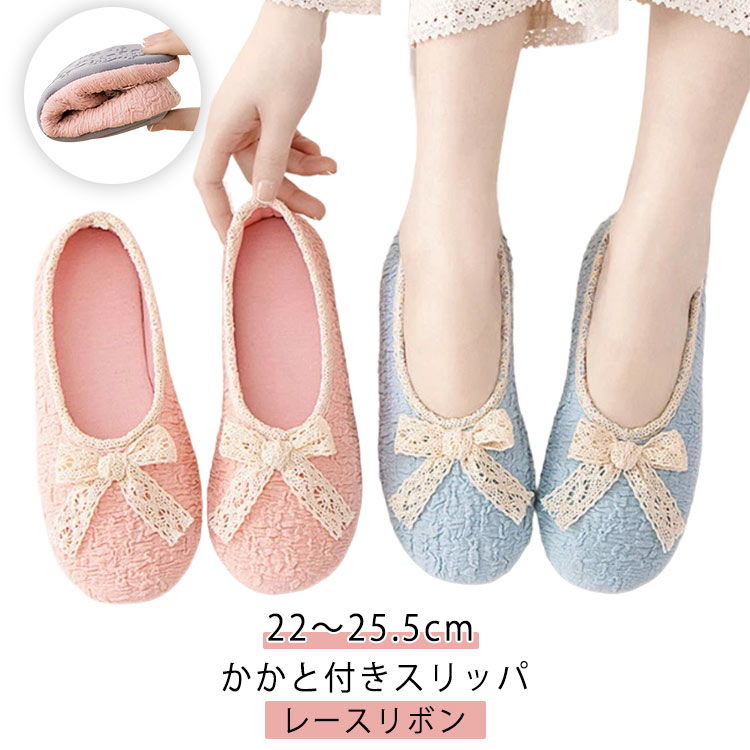 ■学校 ルームシューズ スリッパ 洗える ルームシューズ おしゃれ スリッポン 婦人 用 学校 レースリボン 綿 滑り止め 室内履き 入院 かか
