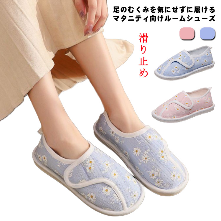 ■マタニティ ルームシューズ 綿カーゼ 妊婦用 妊娠中 靴 スリッパ 浮腫み マジックテープ 足のむくみ対応 シューズ 産前 産後 かかと付き