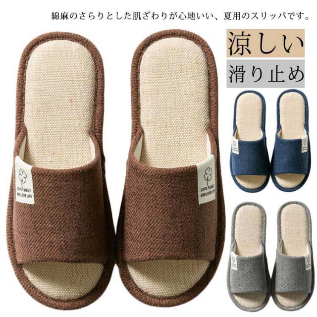 ■麻 スリッパ メンズ 綿麻 夏用スリッパ 春夏 ルームシューズ 室内履き リネン 蒸れない 涼しい 夏スリッパ 軽量 洗える 滑り止め 疲れな