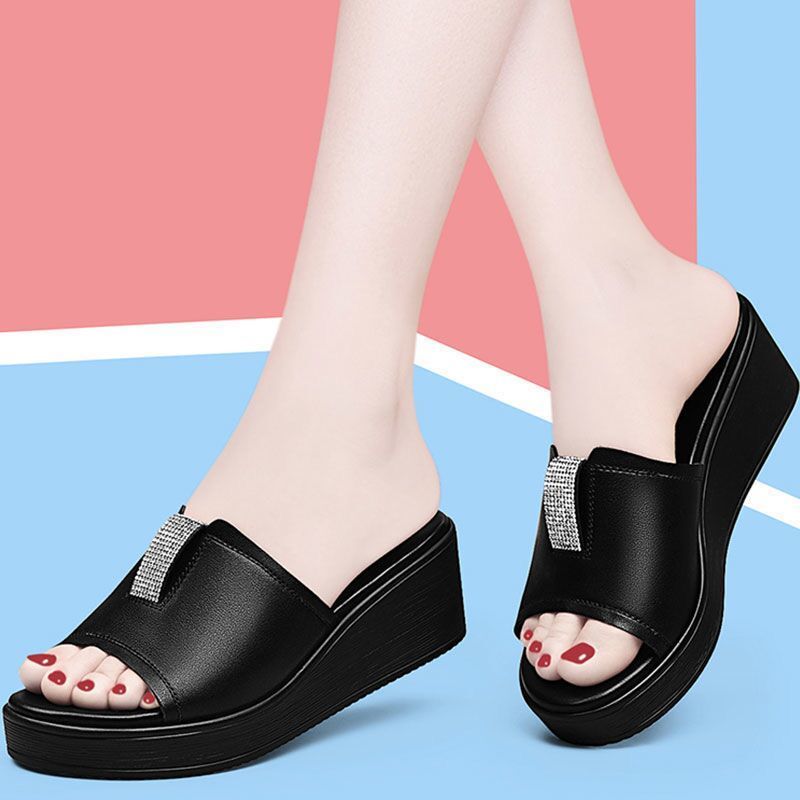 ■厚底 サンダル レディース スリッパ ミュール シューズ ウエッジソール 夏 ハイヒール 歩きやすい 美脚 脚長効果 疲れにくい クッション