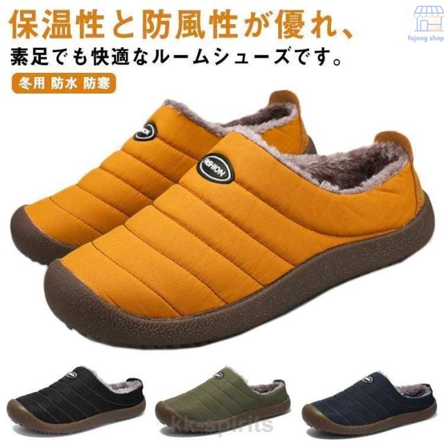 ■ルームシューズ かかと付き ふわふわ スリッパ メンズ ボア付き 冬用 防水 防寒 室内履き あったか 職場用 サンダル 冷え対策 オフィス