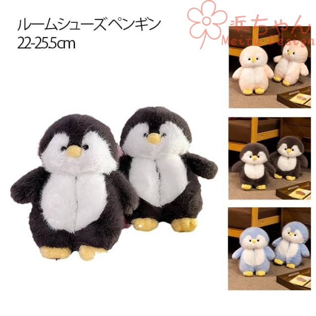 ルームシューズ ペンギン 可愛い ぬいぐるみ スリッパ かかと付き アニメスリッパ 動物 室内履き もこもこ 冬用 あったか 暖かい スリッパ 静音 防滑 ふわふわ レディース メンズ 22-25.5cm ボアシューズ 防寒 保温