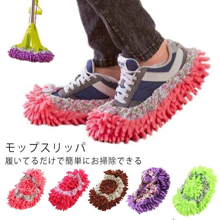 ■モップスリッパ お掃除スリッパ 2足セット 2WAY お掃除パッド スリッパ ルームシューズ マイクロファイバー モップ 掃除 掃除グッズ モッ