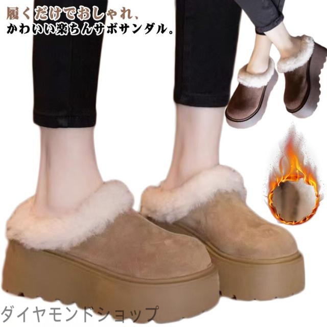 ■サボサンダル 冬 サンダル あったか 裏ボア 厚底 レディース スリッパ 秋冬 おしゃれ サボ ボア 裏起毛 ムートン 柔らかい かかとなし サ
