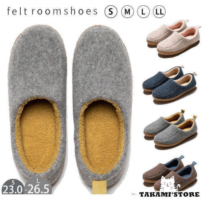 ■ルームシューズ フェルト スリッパ 暖かい かかと付き レディース メンズ 室内履き ボア おしゃれ 室内用 秋冬 あったか 洗える 滑り止め