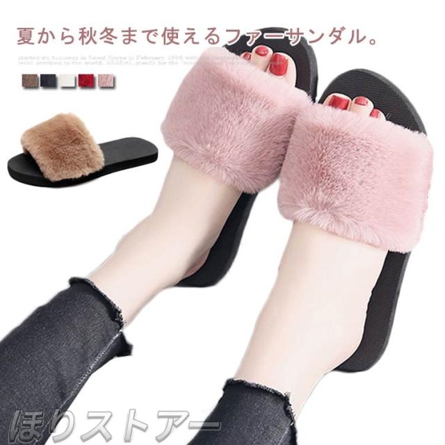 ファーサンダル ブラットサンダル 1.5cm ルームシューズ スリッパ コンフォート レディース ファー付きサンダル ルームスリッパ フラットソール シューズ 軽量 春夏 秋冬 オールシーズン 歩きやすい 疲れにくい