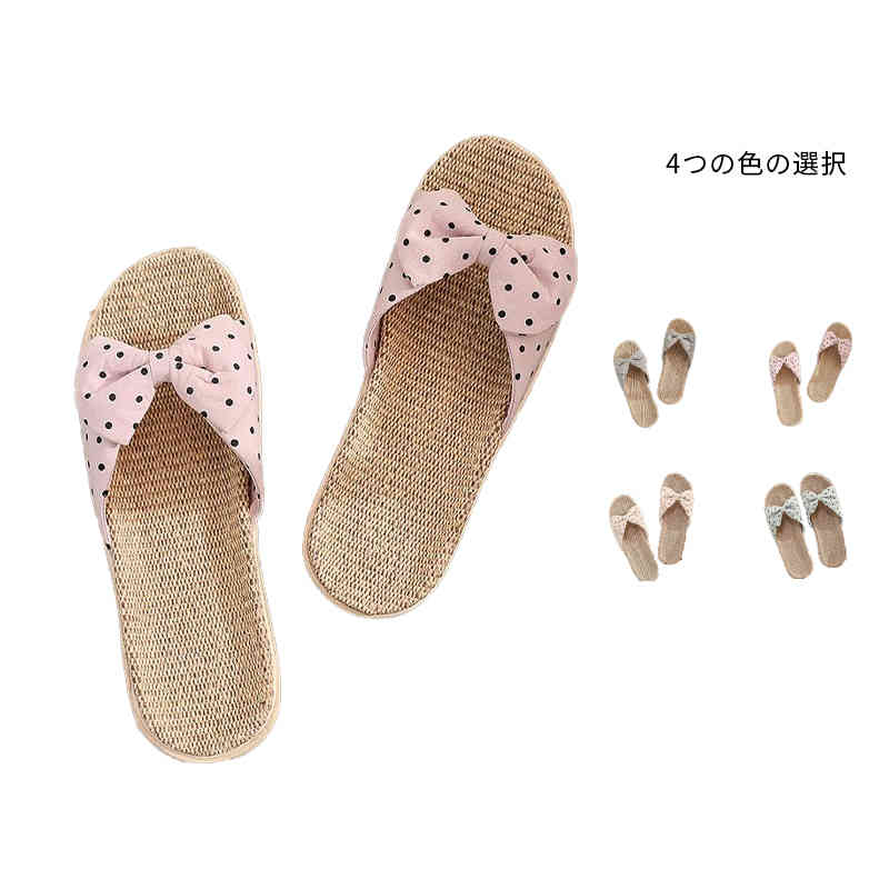 ■スリッパ 春夏秋 ドットスリッパ リネン底 ルームシューズ 女子 滑り止め 洗える 歩きやすい かわいい サンダル お風呂 室内履き 浴室