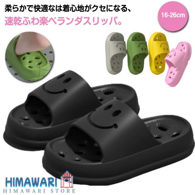 キッズ 前開き 水がたまらない 水切り 穴あきソール 子供?大人サイズ!ベランダ スマイル 子供?大人サイズ!ベランダ スリッパ お風呂 夏 軽量 速乾 ベランダサンダル シャワーサンダル バススリッパ 室内履き 大人 穴あき 滑り止め 掃除 抗菌