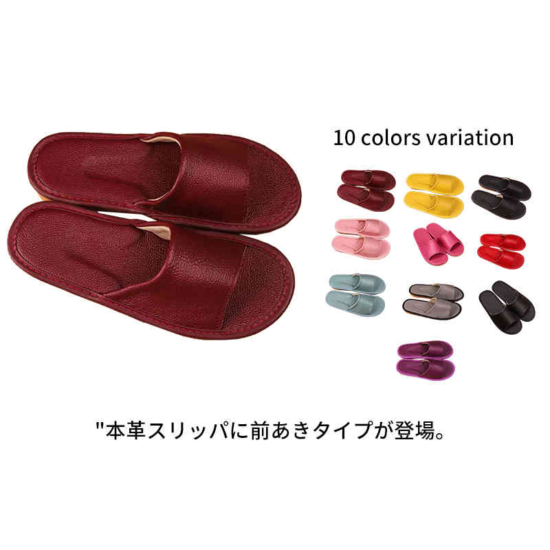 ■スリッパ レディース メンズ 室内履き 本革 牛革 ルームシューズ 前開き オフィス サンダル 来賓用 男女兼用 事務所 参観 お稽古 業務用