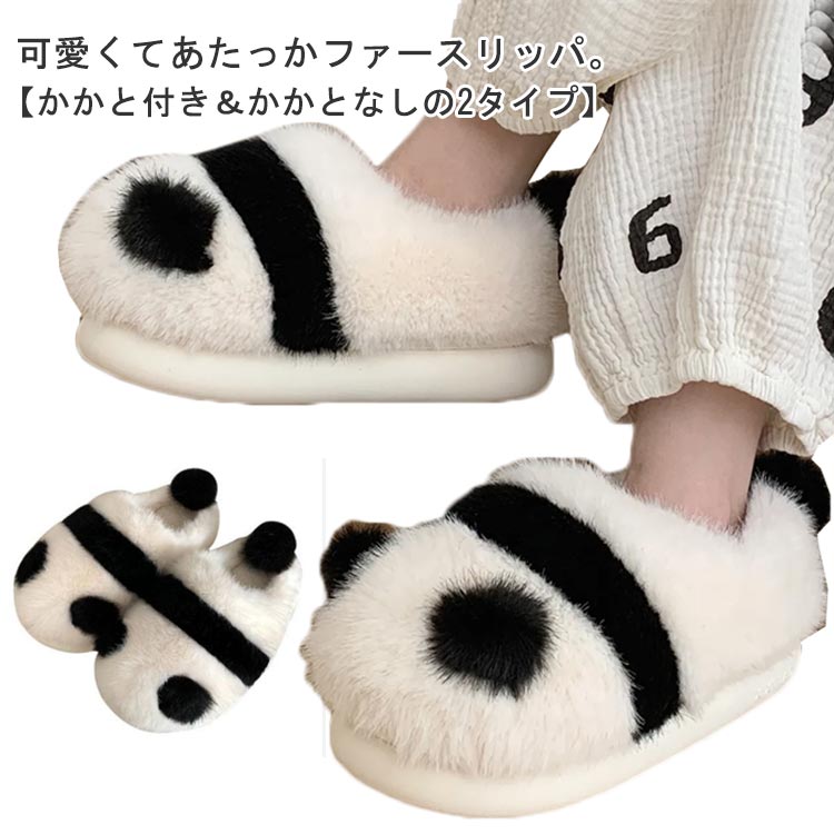 ■ルームシューズ もこもこ パンダ かわいい レディース メンズ 冬 冬用 スリッパ かかと付き あったか ファー ふわふわ もこもこスリッパ