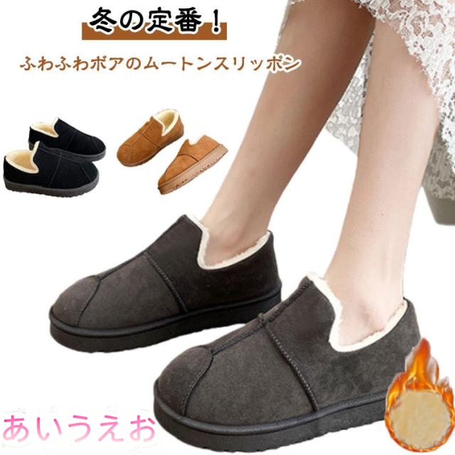ムートンブーツ ショート ボア 冬 ムートンスリッポン ぺたんこ スリッパ レディース 歩きやすい 靴 フラットブーツ ムートンブーツ 裏起毛 女の子 ムートン調 冬の定番 ブラック 防寒 スリッポン ボア ファー 冬
