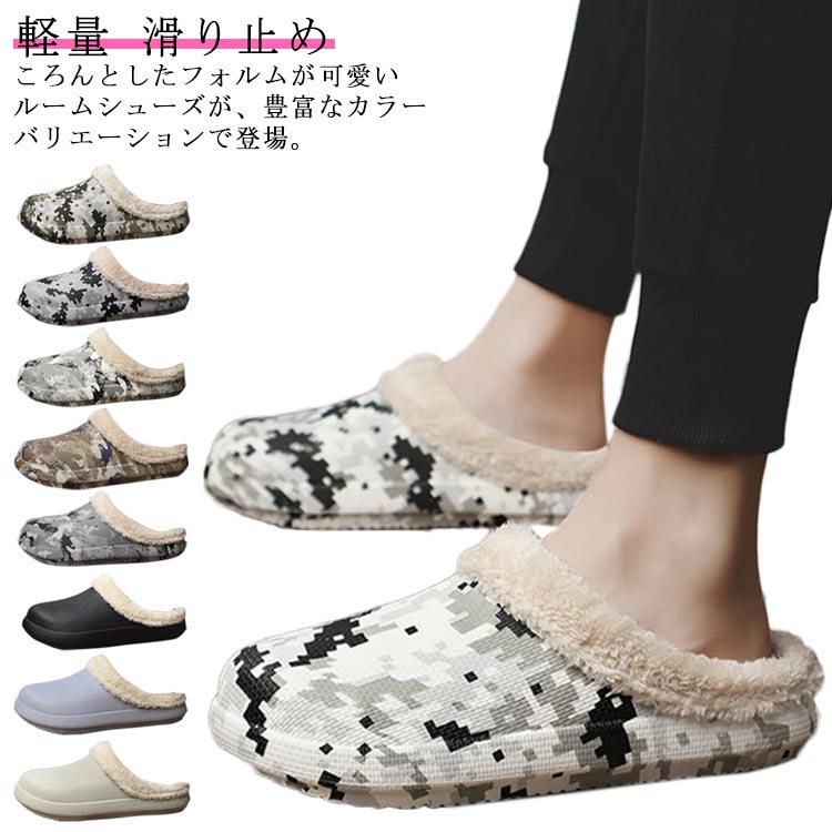 ■ルームスリッパ 裏起毛 ルームシューズ メンズ 軽量 滑り止め EVA 室内履き スリッパ 秋冬 裏ボア 防寒 防水 大きいサイズ 迷彩柄 静音