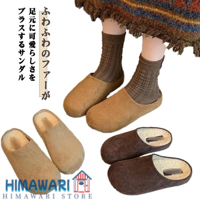 サボサンダル 厚底 レディース コンフォートサンダル スリッパ サボサンダル ふわふわ もこもこ あったか サボ サンダル ルームシューズ 内ボア スエード かかとなし 冬 靴 おしゃれ 屋内 屋外 滑り止め カジュアル オフィス