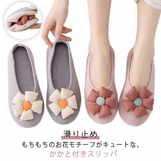 スリッパ かかと付き レディース ルームシューズ 花モチーフ 可愛い 滑り止め おしゃれ 室内履き スリッポン 入院 かかと 婦人 学校 靴 くつ シューズ 人気 マタニティ 産後 上履き 洗える 送料無料