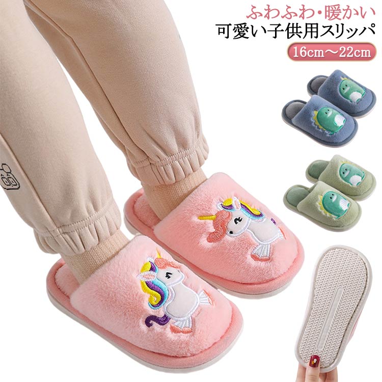 ■キッズ 暖かい 秋冬 シンプル スリッパ もこもこ かわいい おしゃれ ルームシューズ フェイクファー 冬 男の子 ふわふわ 軽量 可愛い あ