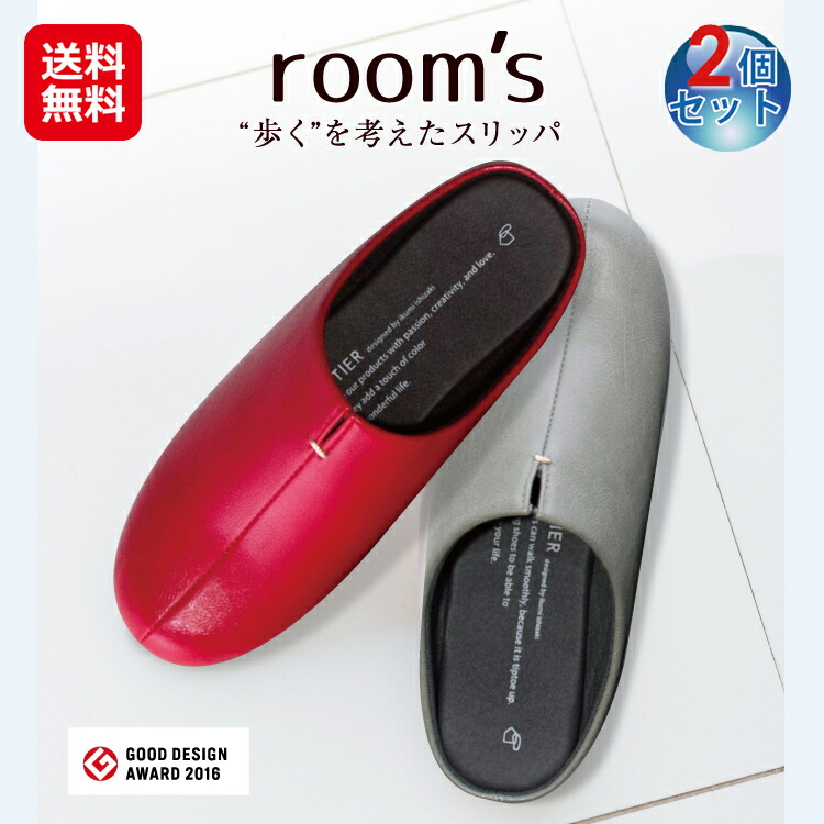 ■スリッパ おしゃれ ルームシューズ スリッポン バブーシュ 【room's ルームズ FRONTIER(2足セット)】【送料無料】 2016年グッドデザイ