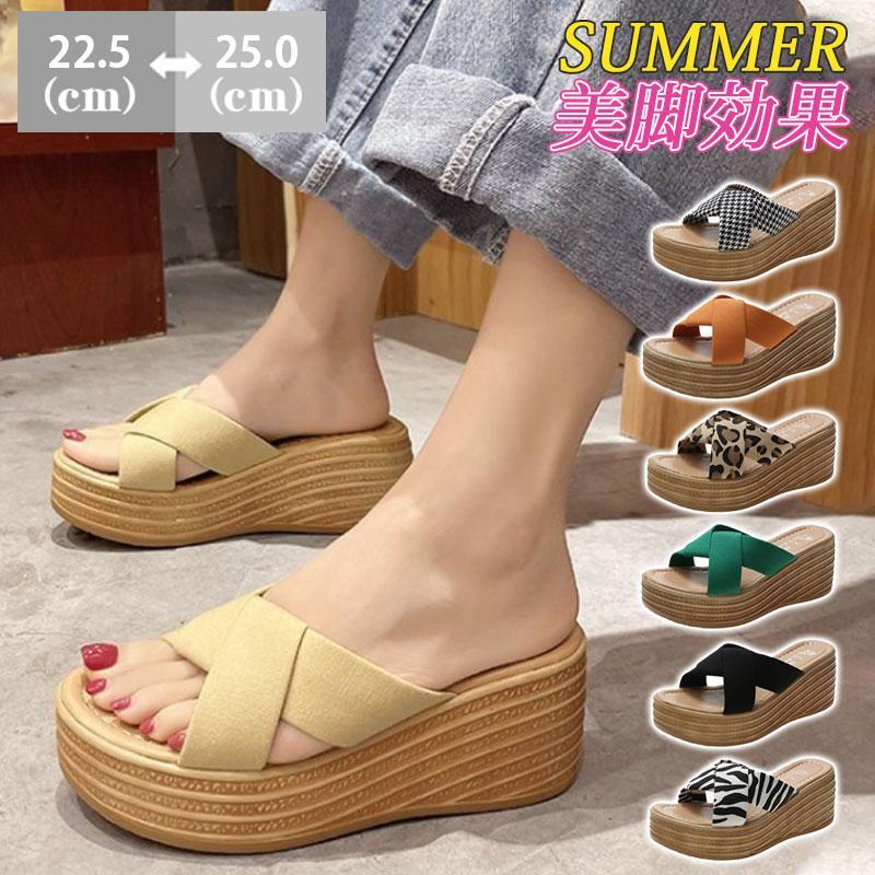 ■厚底サンダル レディース ウエッジソール 豹柄 スリッパ 歩きやすい ヒールサンダル 痛くない 美脚 滑らない 疲れにくい 韓国風 ミュール