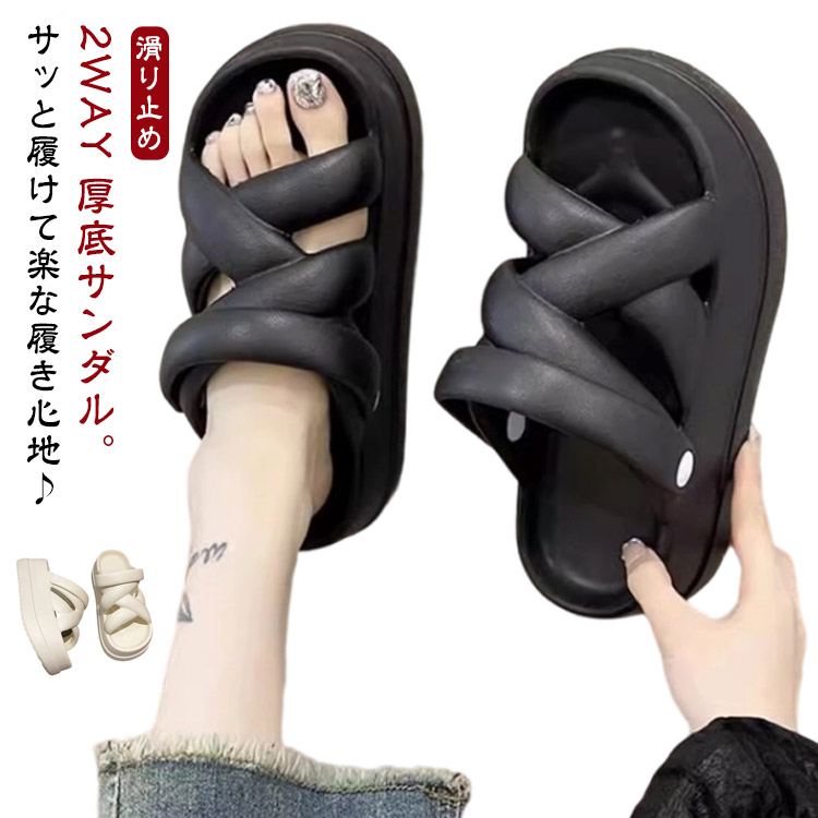■2WAY サンダル レディース 厚底 スリッパ 疲れない 厚底サンダル 厚底ソール かかとベルト スリッパサンダル 美脚 柔らか 軽量 痛くない
