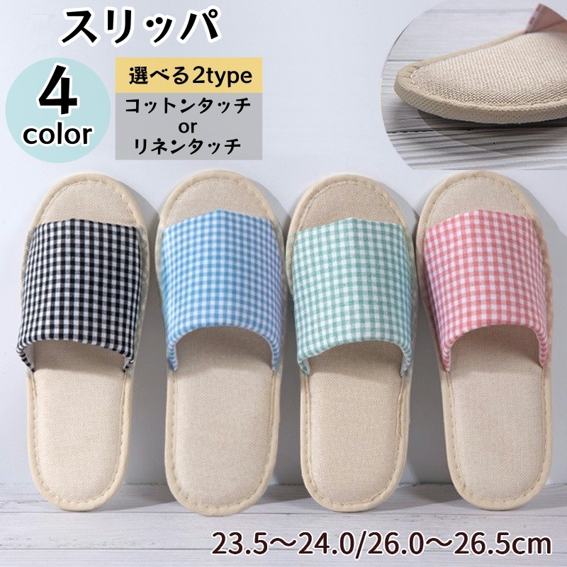 ■スリッパ 前あき ルームシューズ レディース メンズ 室内履き フラット ギンガムチェック柄 格子柄 おしゃれ かわいい 部屋用