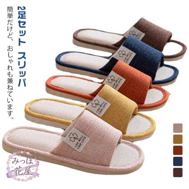 室内 夏用 ルームシューズ 2足セット 来客用 2足セット 春夏用 レディース 夏 メンズ ルームシューズ 春 スリッパ 秋 冬 麻 大きいサイズ 静音 おしゃれ 足冷え対策 滑り止め