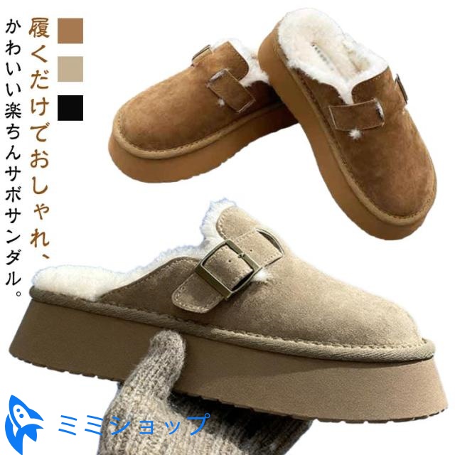 ■サンダル 冬 秋冬 サボサンダル 裏起毛 おしゃれ サンダル 厚底 サボ ムートン 暖かい 厚底サンダル 裏ボア レディース スリッパ かかと