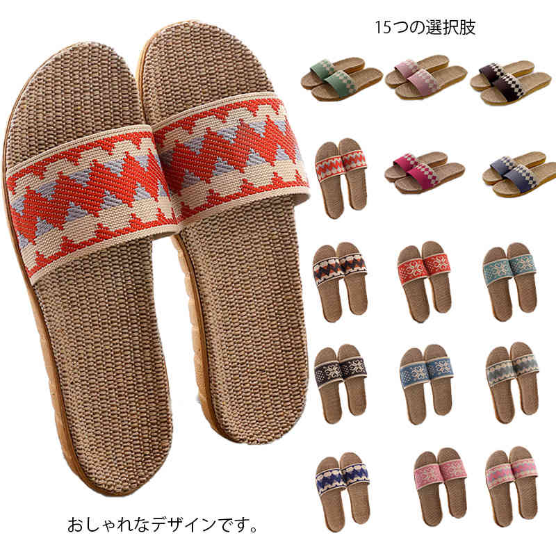 ■3タイプ 15色 ルームシューズ スリッパ 夏 麻 サンダル 涼しい 春 可愛い ホームスリッパ ギフト ペア リネン ジュート 来客用 レディー