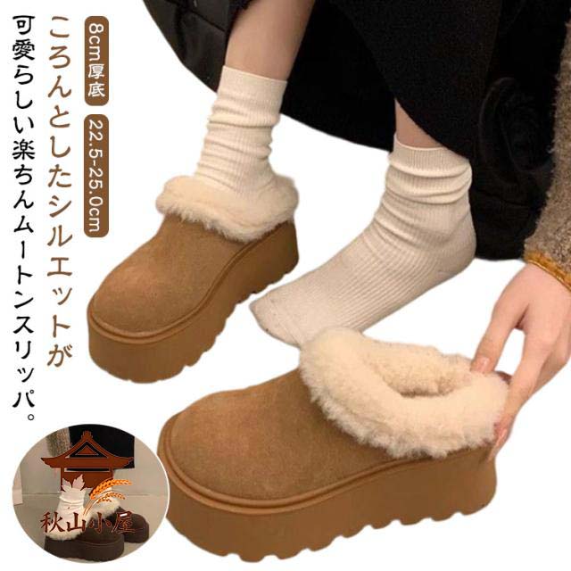 厚底 スリッパ 8cm かかとなし ムートンスリッパ ムートン 裏起毛 ふわふわ サンダル 外履き サボサンダル 裏ボア もこもこ ファー ショート 防寒 暖かい 冬 軽量 厚底スリッパ もこもこスリッパ スリッポン ムートンブーツ ムートンスリッパ 冬スリッパ あったか ベージュ 茶