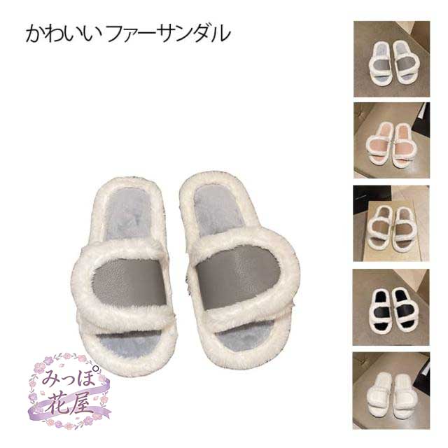 ルームシューズ マジックテープ ファーサンダル もこもこ スリッパ フェイクファー レディース レディース かわいい 冬 ふわふわ あったか おしゃれ PU サンダルスリッパ 室外