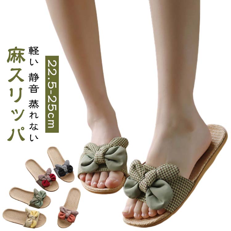 ■軽い 夏 レディース 麻 麻スリッパ リボン スリッパ ルームシューズ 春 リネン スリッパ 可愛い 滑り止め 夏用 おしゃれ 室内スリッパ ト