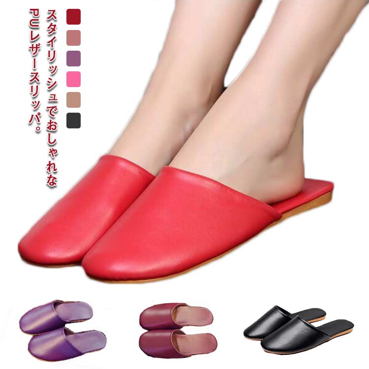 ■スリッパ ルームシューズ メンズ レディース 男女兼用 フェイクレザー PUレザー 来客用 無地 室内履き 柔らかい ルームスリッパ 低反発