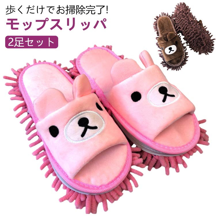 ■掃除 レディース モップ お掃除スリッパ スリッパ 2足セット かわいい おそうじスリッパ 洗える おしゃれ 熊 時短 モップスリッパ 洗濯
