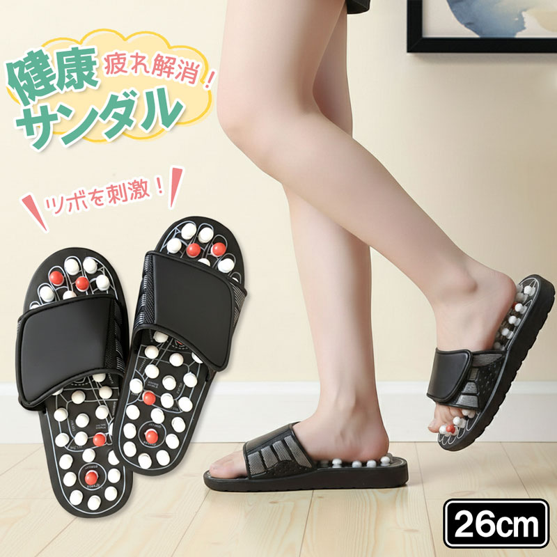 【商品仕様】 商品名: 強力指圧足ツボ健康サンダル 26cm サイズ: 全長26cm×幅10cm 材質: EVA 家の中を歩くだけで全身のケアができる強力指圧サンダルです。 独自の突起配置が足裏の反射区を逃さず刺激します。 立ち仕事による足の疲れや冷えが気になる方への即効リフレッシュに最適です。 家事や仕事の合間に履くだけの「ながら習慣」で毎日体を整えられます。 甲の部分は面ファスナー仕様になっており、足の形に合わせてサイズ調整が可能です。 軽量なEVA素材を採用しているため、片足約208gと軽快な履き心地を実現しました。 汚れも拭き取りやすく、清潔に保てるので室内での新習慣として長くご愛用いただけます。 日々の健康維持や自分へのご褒美、大切な方への実用的なギフトとしても選ばれています。 健康スリッパ メンズ レディース 男女兼用 マッサージ器 刺激 痛い 気持ちいい 立ち仕事 改善 土踏まず かかと ケア シンプル 掃除 料理 オフィス 職場 デスクワーク ギフト 贈り物 誕生日 父の日 母の日 敬老の日 プレゼント 景品 25.5cm 26.5cm 軽量 弾力 耐久性 黒
