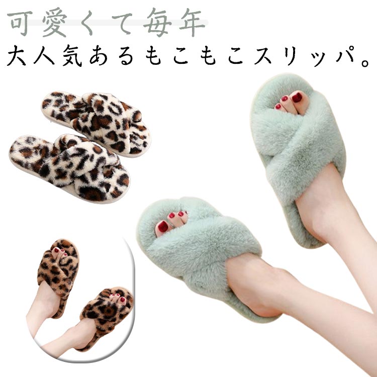 ■ルームシューズ もこもこ レディース スリッパ 無地 ふわふわ ファースリッパ ファーシューズ 室内履き ヒョウ柄 フェイクファー 軽量 滑