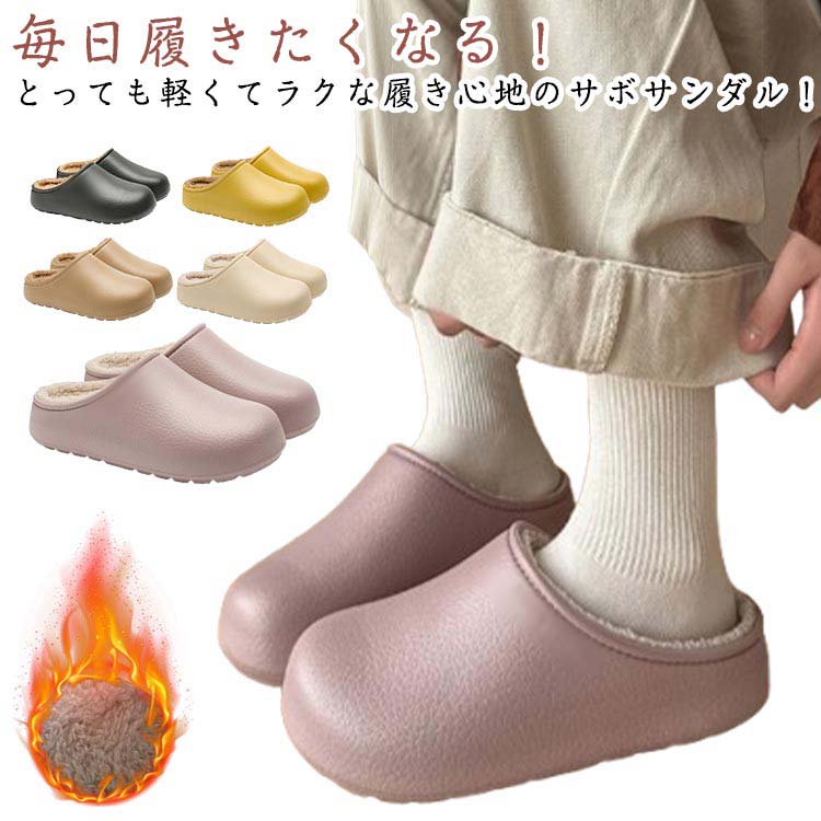 ■あったか サボタイプ サボ 軽量 裏起毛 ムートン 冬 暖か サンダル サボサンダル ボア サボ キッチンシューズ スリッパ ルームシューズ