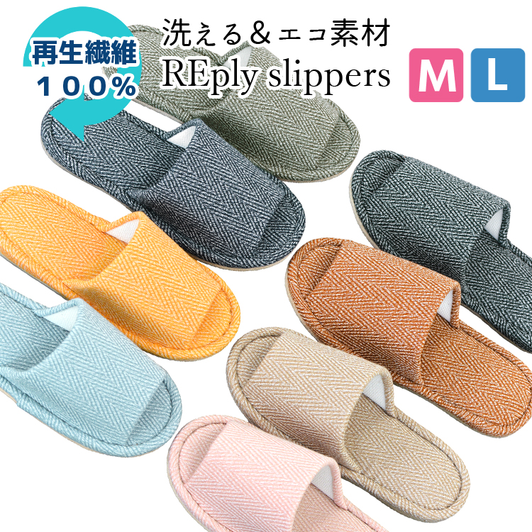 ■プラスチック再生 スリッパ 洗える エコ SDGs REply リプライ ヘリンボーン 外縫い 前空き おしゃれ メンズ レディース 来客用 春夏用 秋