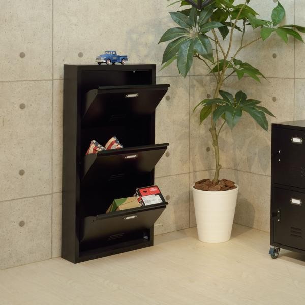 ■シューズラック ロッカー風 幅50 奥行15 3段 スリム 薄型 完成品 おしゃれ シューズボックス 靴箱 くつ入れ スリッパ 収納 玄関 ヴィンテ