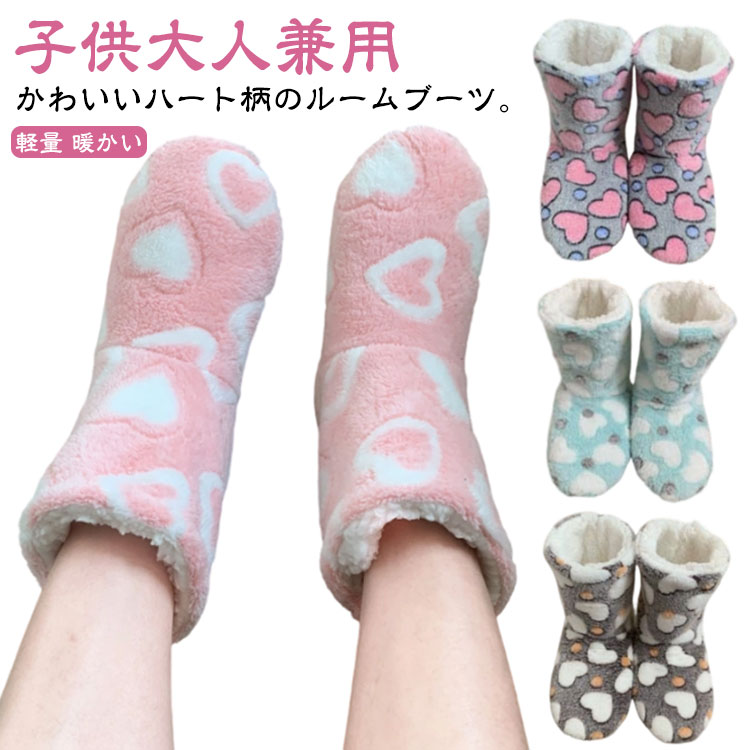 ■もこもこ ハート柄 冬 ブーツタイプ かわいい ルームブーツ 洗える 極厚 室内履き キッズ 滑り止め もこもこ スリッパ 軽量 暖かい レデ