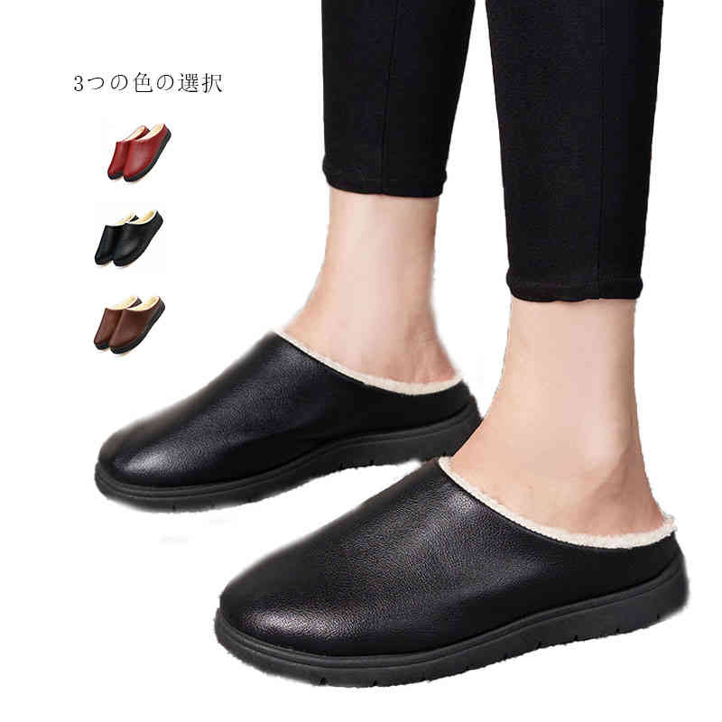 ■スリッパ PUスリッパ 裏起毛スリッパ レディース 防水 柔らかい ルームスリッパ 厚底 暖かい 滑り止め 秋冬 無地 部屋靴 室内履き 防寒