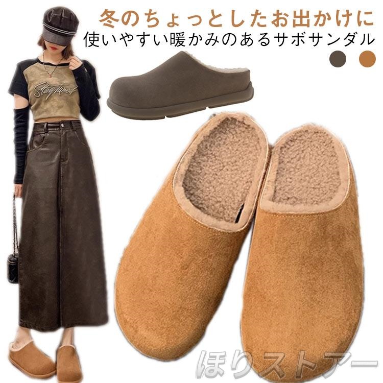 防寒 ボア レディース ラウンドトゥ サボサンダル スリッパ 裏起毛 サボ サンダル かかとなし シューズ 秋 冬 サボサンダル 暖かい