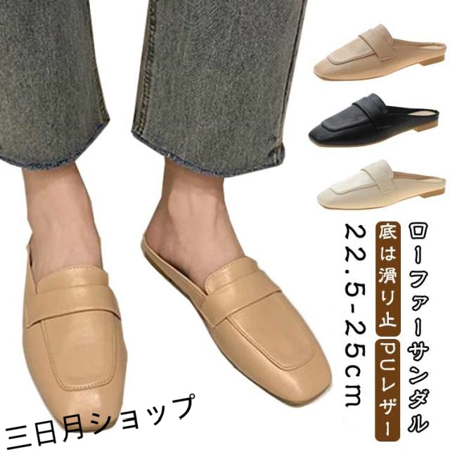 スリッパ ローファーサンダル ローファー風サンダル ミュール ローヒール ぺたんこ ローファー つっかけ 春夏 スリッポン かかとなし サボサンダル スクエアトゥ フラットシューズ マニッシュ カジュアル ミュール おしゃれ 大人女子