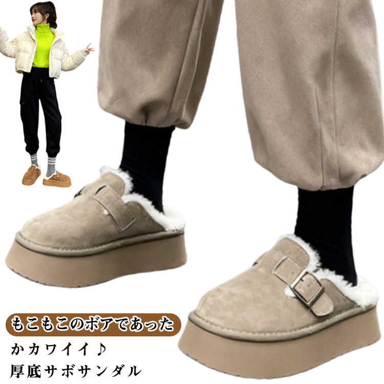 ■厚底 サンダル 冬用 暖かい かわいい サボ 厚底 スリッパ ボア クロッグサンダル ボアサンダル もこもこ 防寒 秋冬 軽量 レディース ふわ