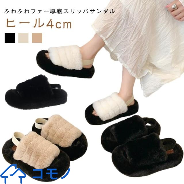 ファーサンダル レディーズ ルームシューズ おしゃれ 秋 冬 暖かい 室内履き ルーム ボア シューズ 厚底サンダル スリッパ もこもこ 美脚 ふわふわ ミュール ヒール4cm あったか フラットサンダル 歩きやすい 美脚 カジュアル お出かけ 履きやすい 足元 冷え対策 冷え 防寒
